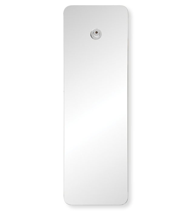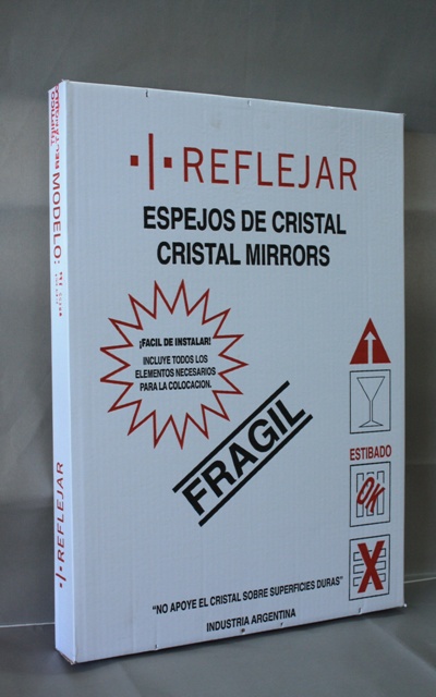 Espejo rectangular bordes pulidos, espesor 4mm, sujeto a pared mediante perforación y piezas de bronce cromado.