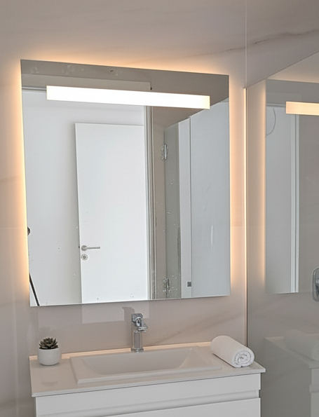 Ofrecemos soluciones a medida que se adaptan a tu necesidad. *Formas ,*Bordes pulidos, biselados , con marcos de PVC fino o ancho *LUZ LED y *Encendido Touch , dimerización de luz neutra, cálida o fría .*Sistema Antiempañante